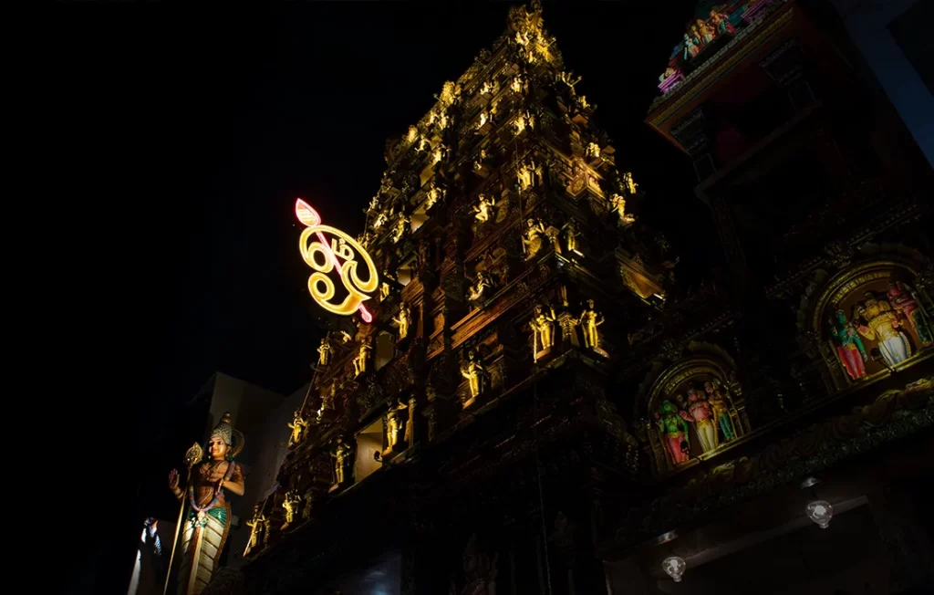 Sparkle Design Center delivered the complete electrical and ELV design for a 1,200 sq.ft temple facility, including the main worship area, priest accommodation, wedding hall, and supporting rooms.